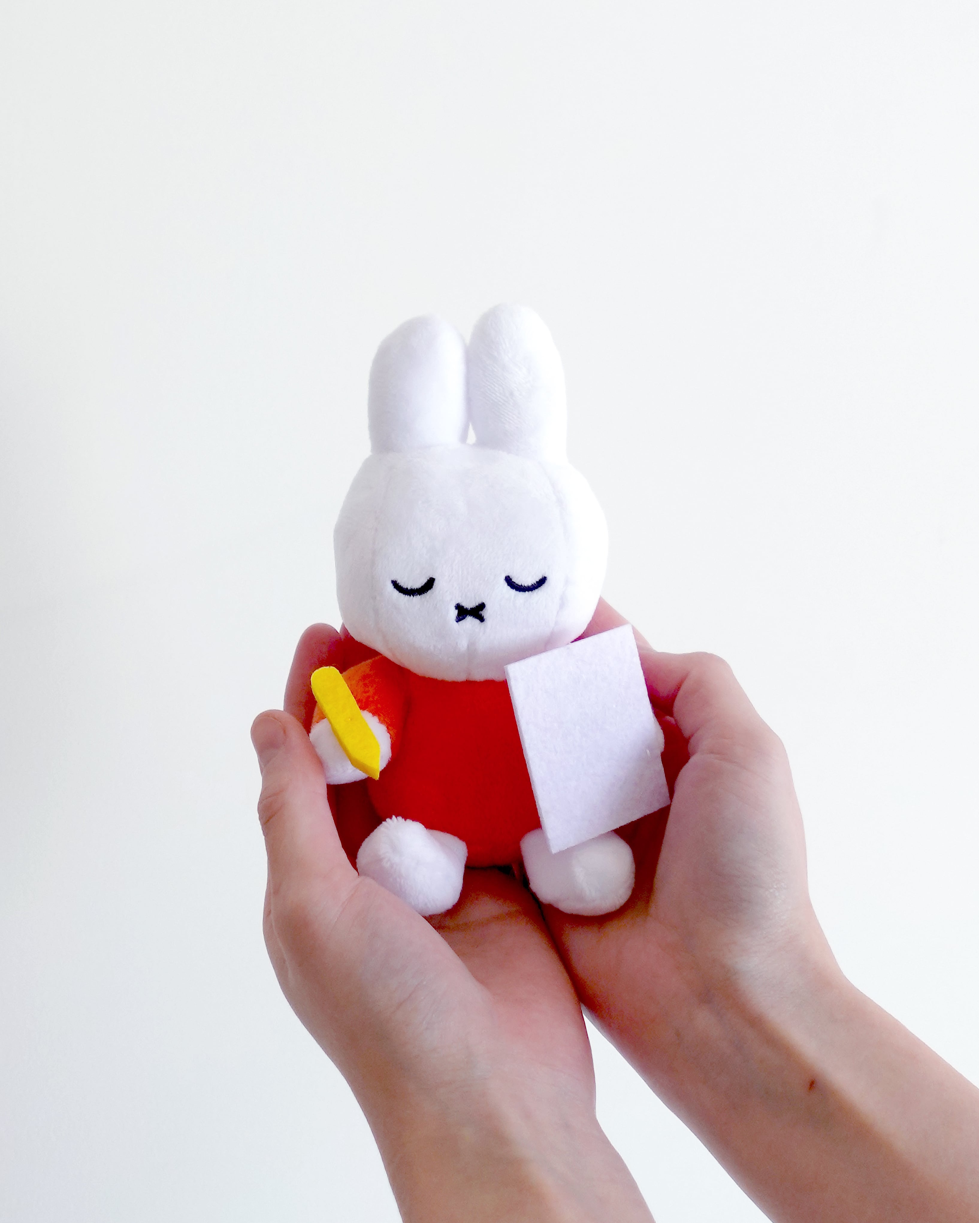 手紙を書く、ちいさなミッフィー 「フェルメールと17世紀オランダ絵画展」オリジナルグッズ 「手紙を書くミッフィー」は、絵本『うさこちゃんの手紙』に登場する、手紙を書いているミッフィーのイラストをモチーフにした手のひらサイズのぬいぐるみです。 ちょこんとおすわりした姿が愛らしく、机の上や本棚にそっと置いて楽しめます。 本アイテムは、「フェルメールと17世紀オランダ絵画展」 にて、ともにオランダ生まれの フェルメール と ミッフィー が特別にコラボレーションして誕生しました。 絵画と絵本、時代も表現も異なるふたつの世界が出会った、展覧会ならではの特別なアイテムです。 ーーーーーー サイズ(mm):H130 / W100 / D65 ーーーーーー ▼ミッフィーのアイテム https://bluesheep.theshop.jp/categories/7117500 © Mercis bv