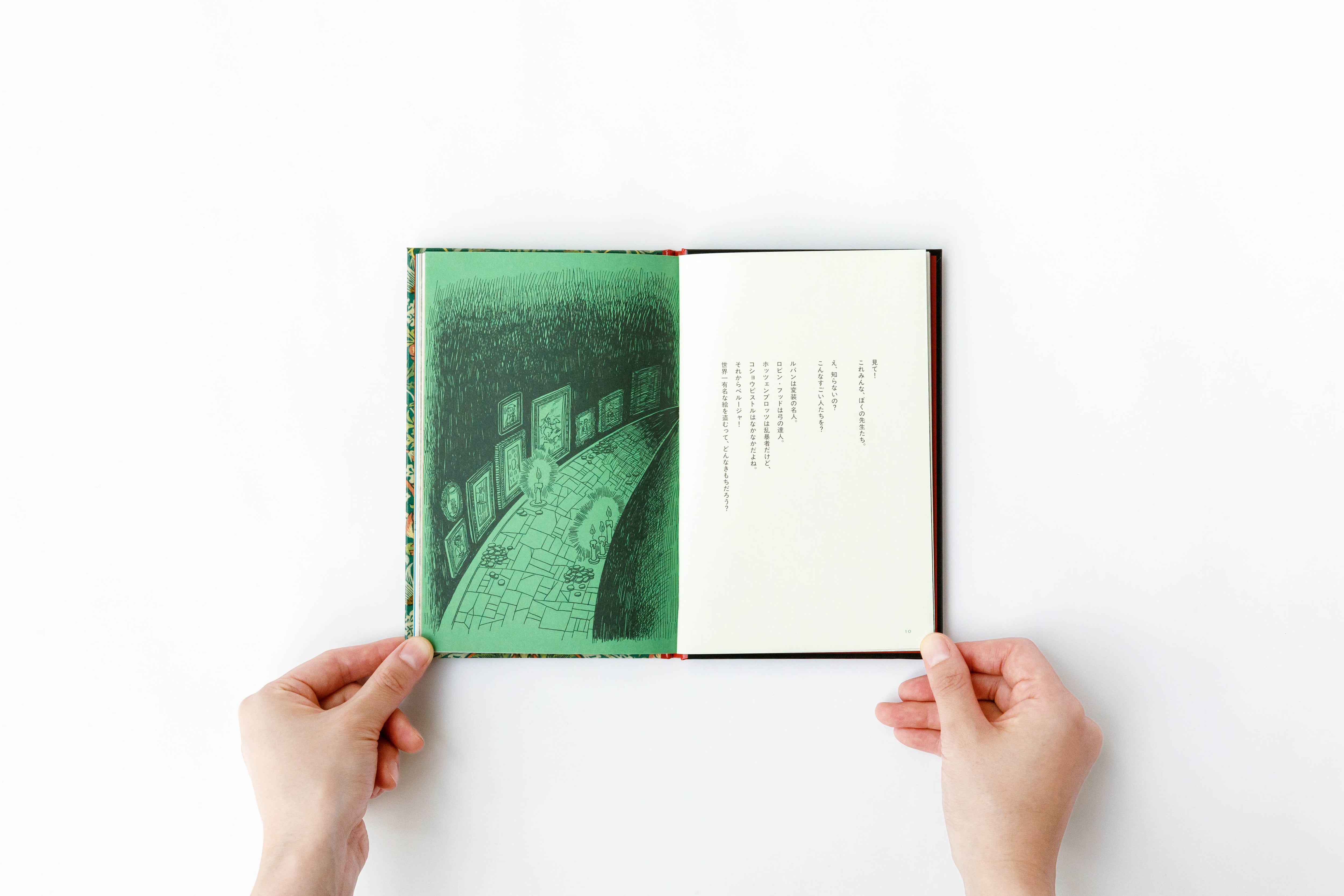 「大どろぼうの家」には、一体どんなどろぼうが住んでいるのでしょうか。大人なのか子どもなのか、1人なのか複数人なのか。入口から緑の回廊、青の応接間、赤の隠し部屋と家の中を進めば進むほど、たくさんの顔が現れ、消えていきます。その不思議さ・不気味さを紐解くヒントになるような、大どろぼう自身が語る「大どろぼうの家」の物語です。