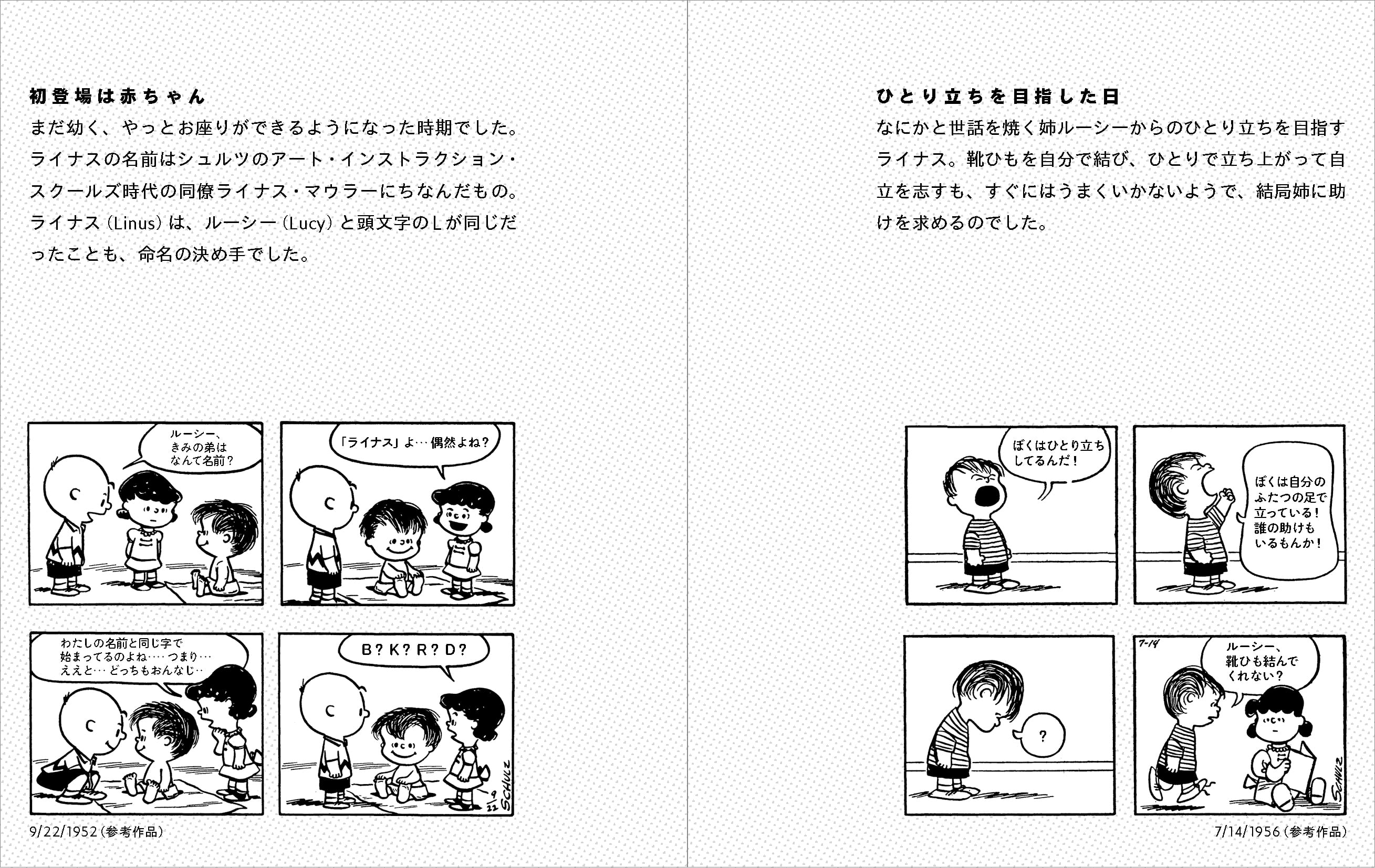 気の強い姉ルーシーによる、時に理不尽な仕打ちをやり過ごし、哲学的な考えを述べる大人びた姿を見せる一方で、毎年ハロウィンの夜には畑に出かけ、願いを叶えてくれるカボチャ大王を待ちわびて過ごす夢見がちな一面も。優しく思慮深く、でもちょっとおっちょこちょいなライナスを、もっと知り、もっと好きになる一冊です。