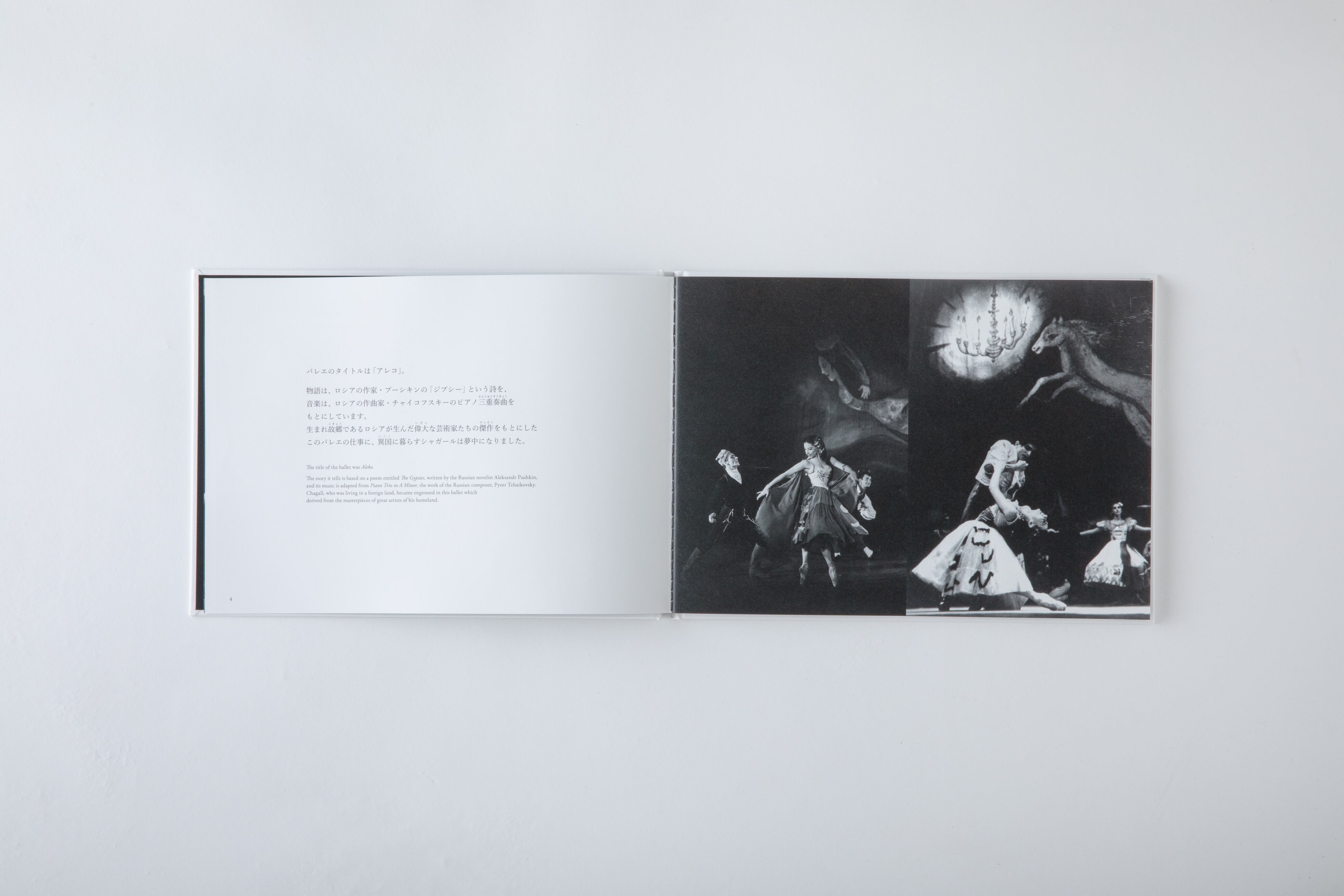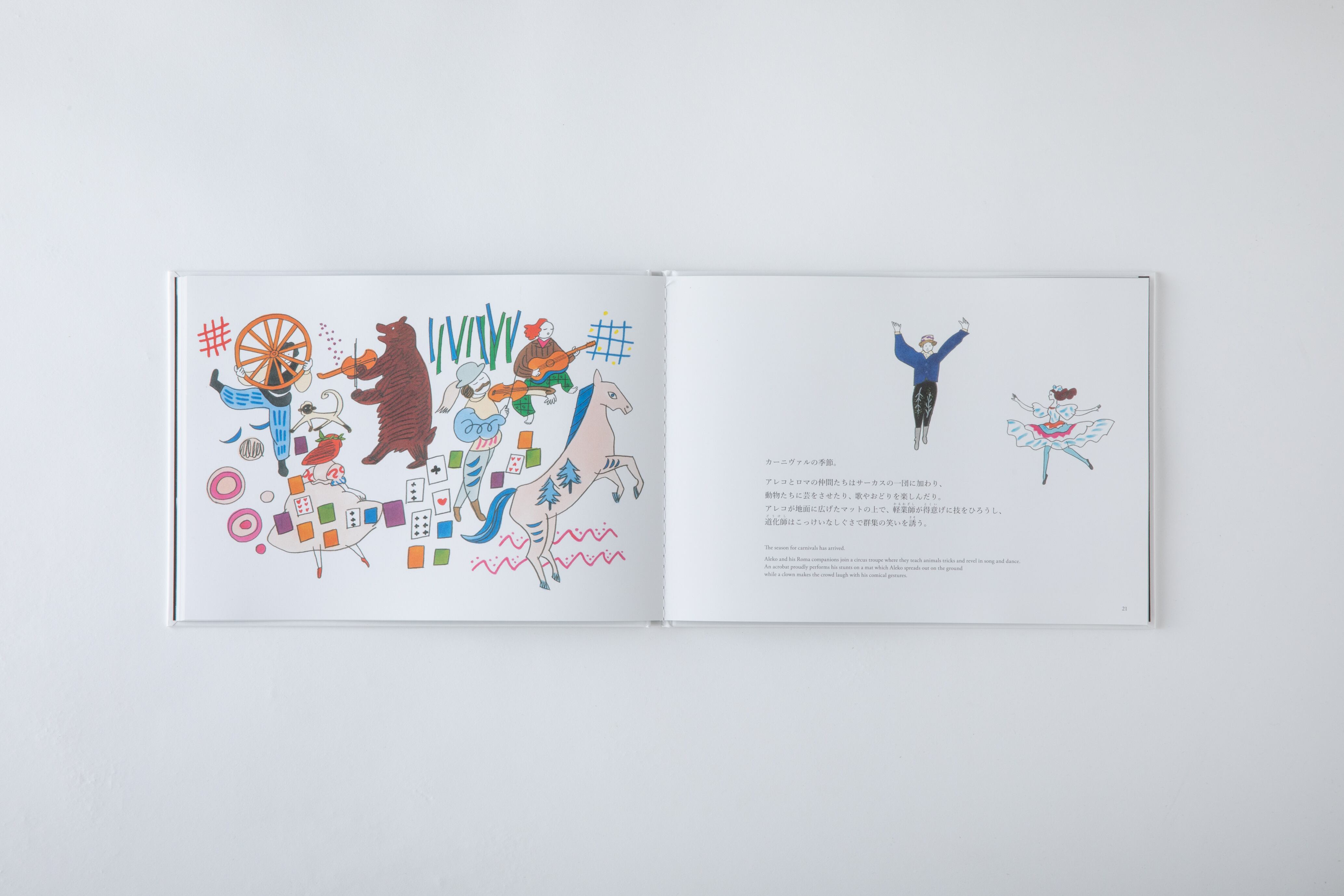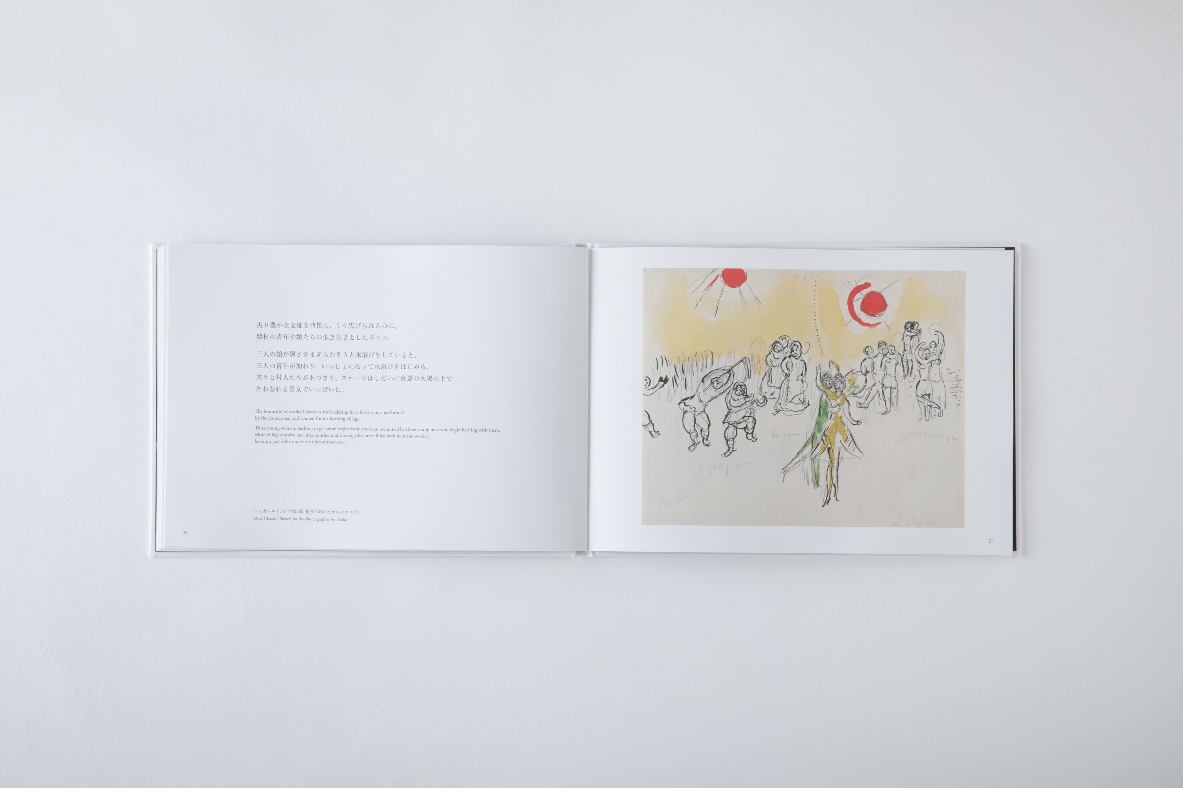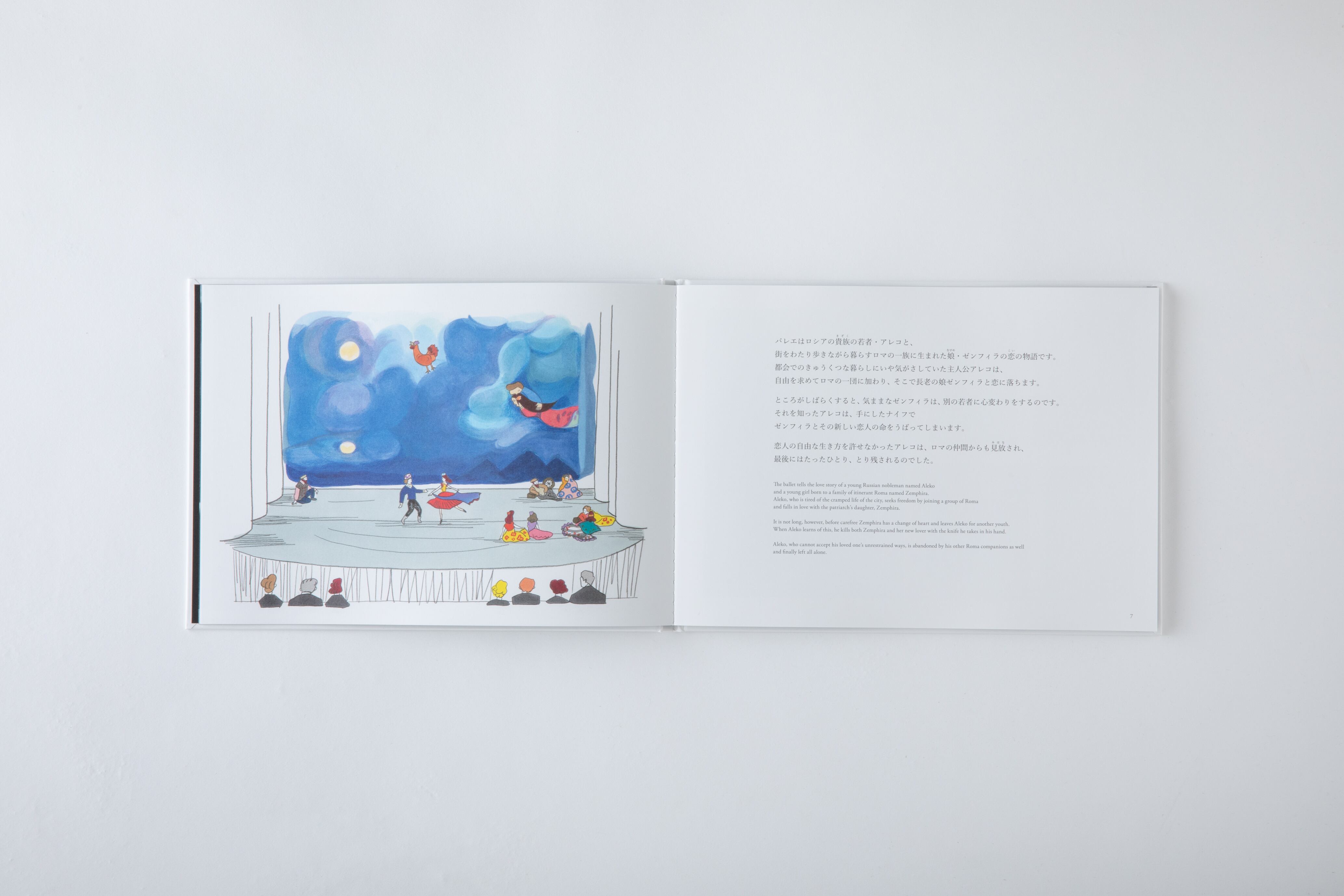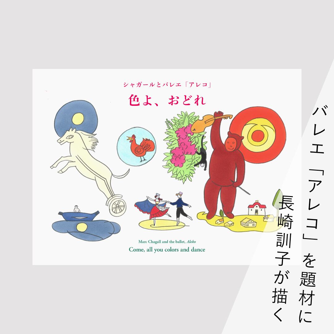 バレエのストーリーやシャガールが「アレコ」の制作に込めた思い、絵のモチーフなどの解説を加えた絵本は、人気イラストレーター・長崎訓子の描き下ろしイラストと、子どもに語りかけるような平易な言葉で綴られ、大人から子どもまでお楽しみいただけます。