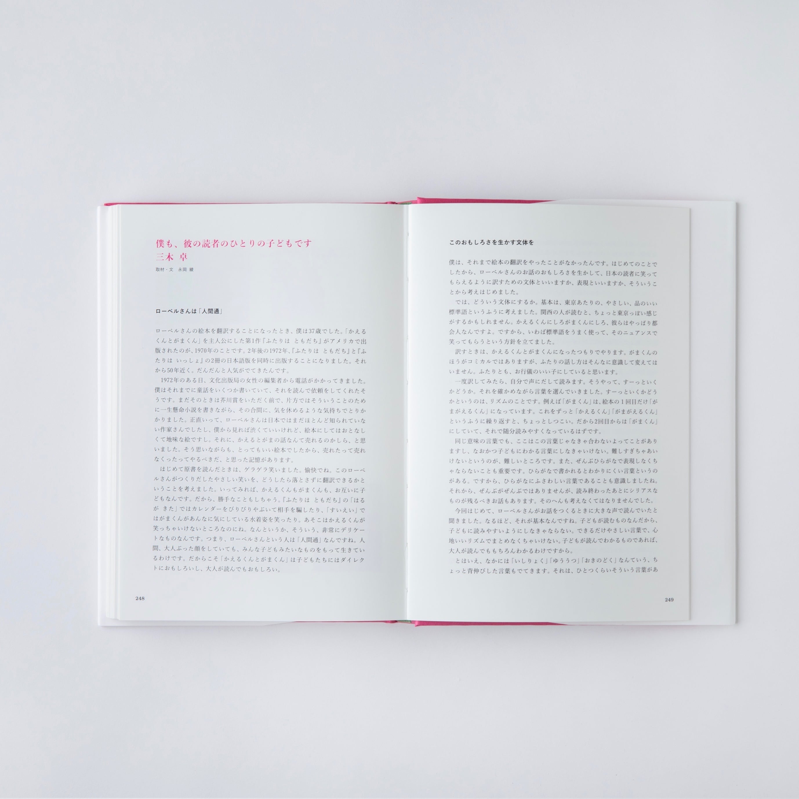 本書は、展覧会図録として図版や解説を収めながら、ふたりの子どもたちが父の素顔を語るロングインタビューや、数多くのローベル作品の翻訳を手がけた作家・三木卓さんの解説を収録した決定版の一冊です。