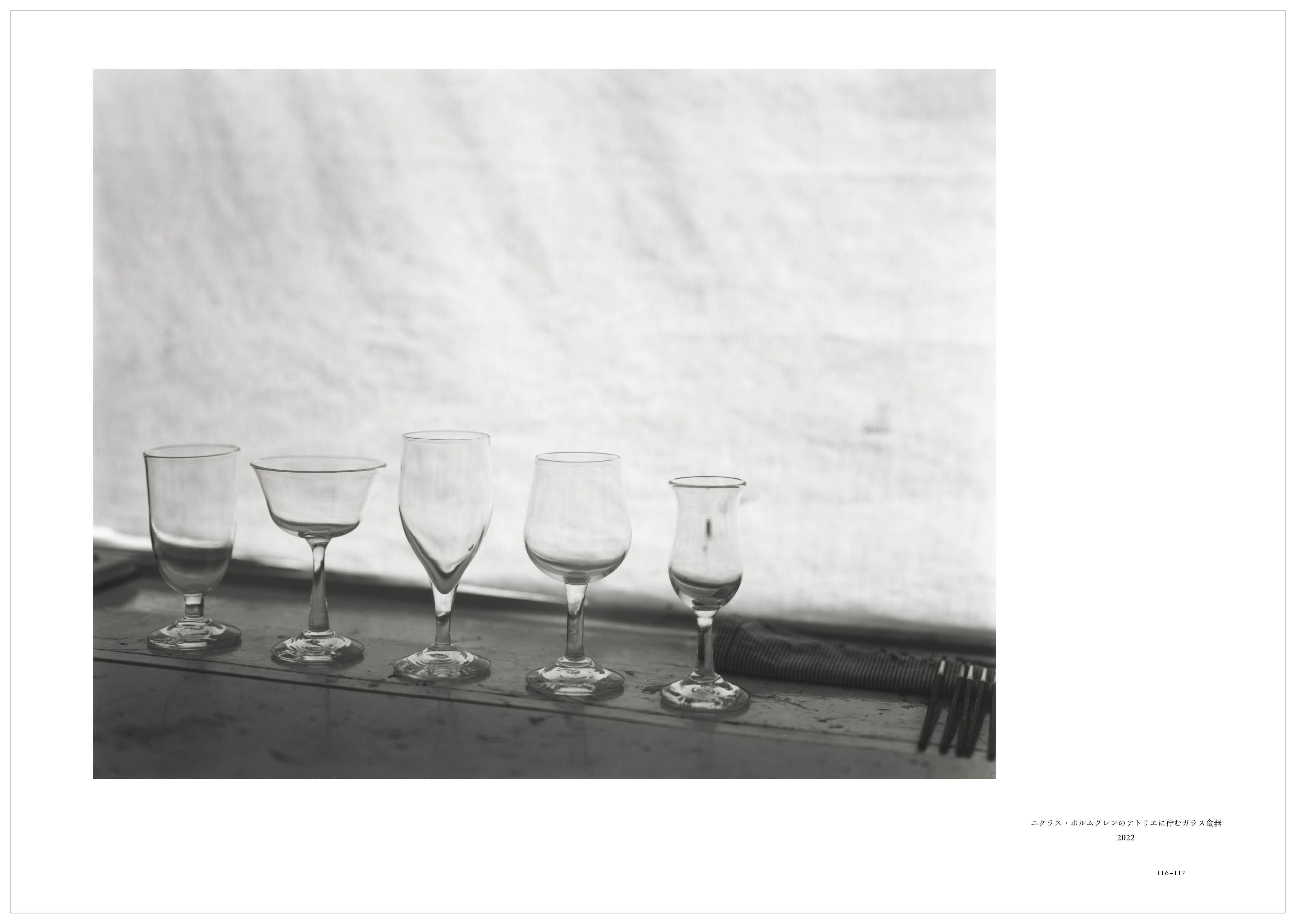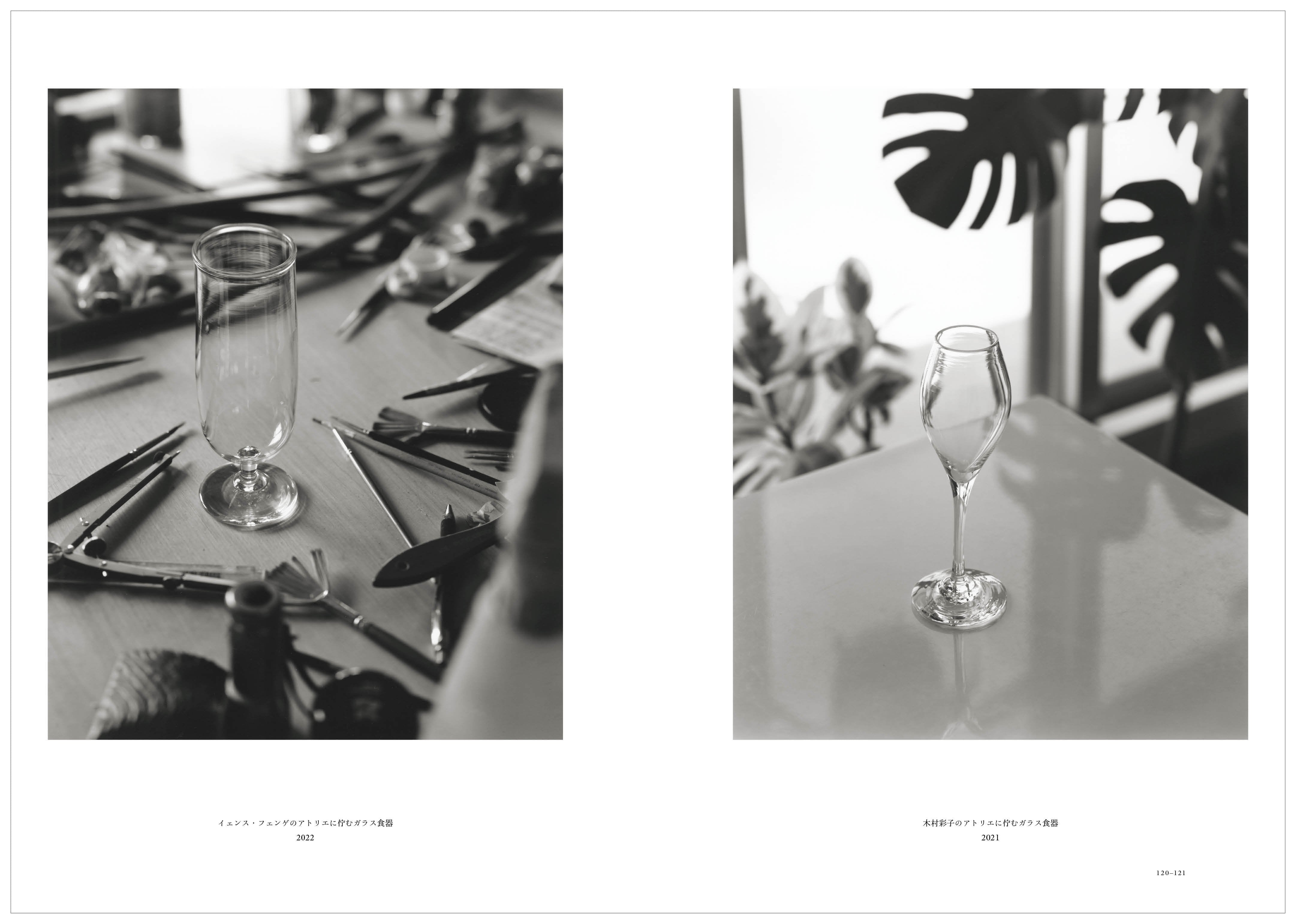 宙吹きならではのわずかな歪みが美しいクリアーガラスの食器、それを受け取った画家たちによる親密な絵画、浮遊感をたたえたモノクロームの写真など、三者三様で表現され、それを見る人自身も、「ガラス食器」について無限の思いをめぐらせるような1冊です。