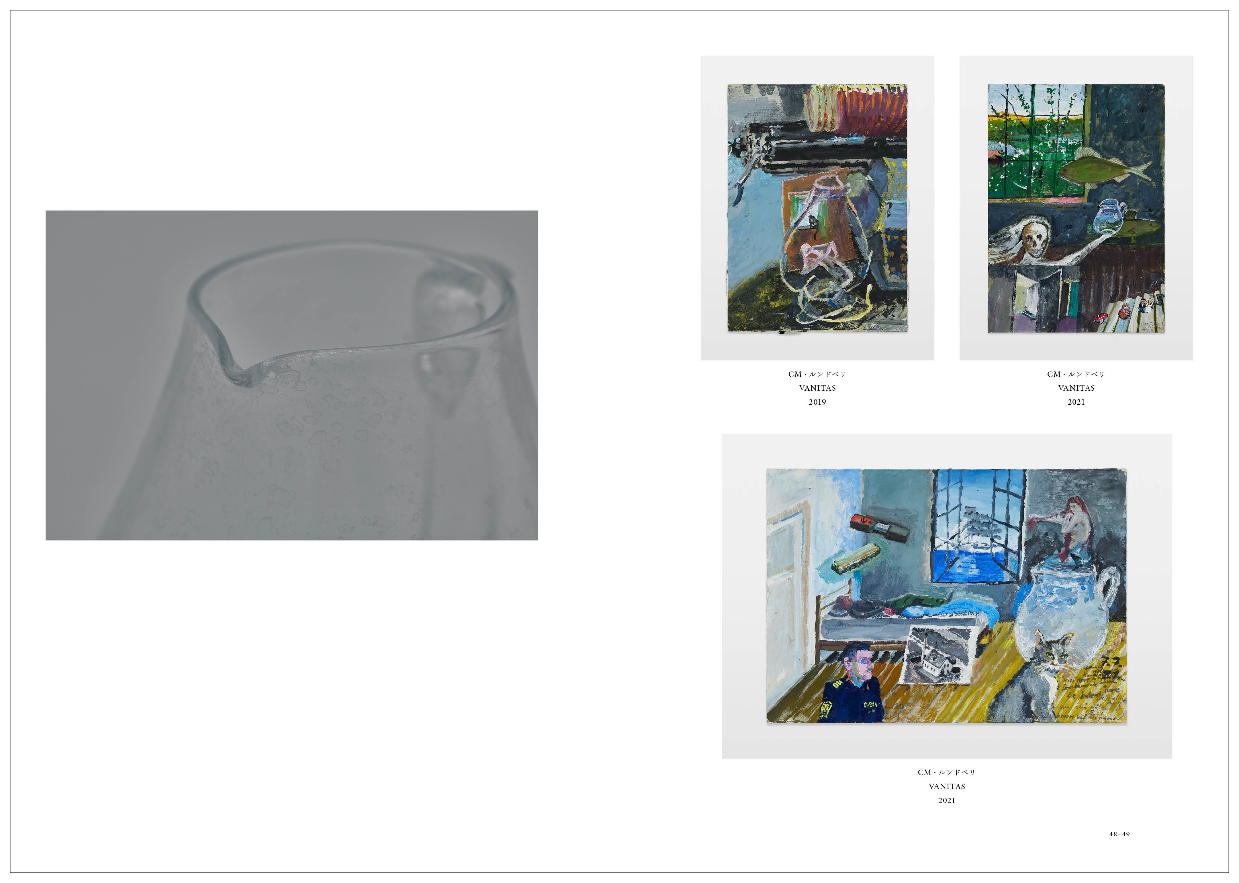 古くから身近なガラスという素材を介して、さまざまな文化的背景をもつアーティストたちは、言葉と想像力を通じた対話を経て作品を制作しました。そこから生まれたガラスの器と静物画を、写真家の三部正博が画家のアトリエで撮り下ろし、プロジェクトはアートブックとして結実。