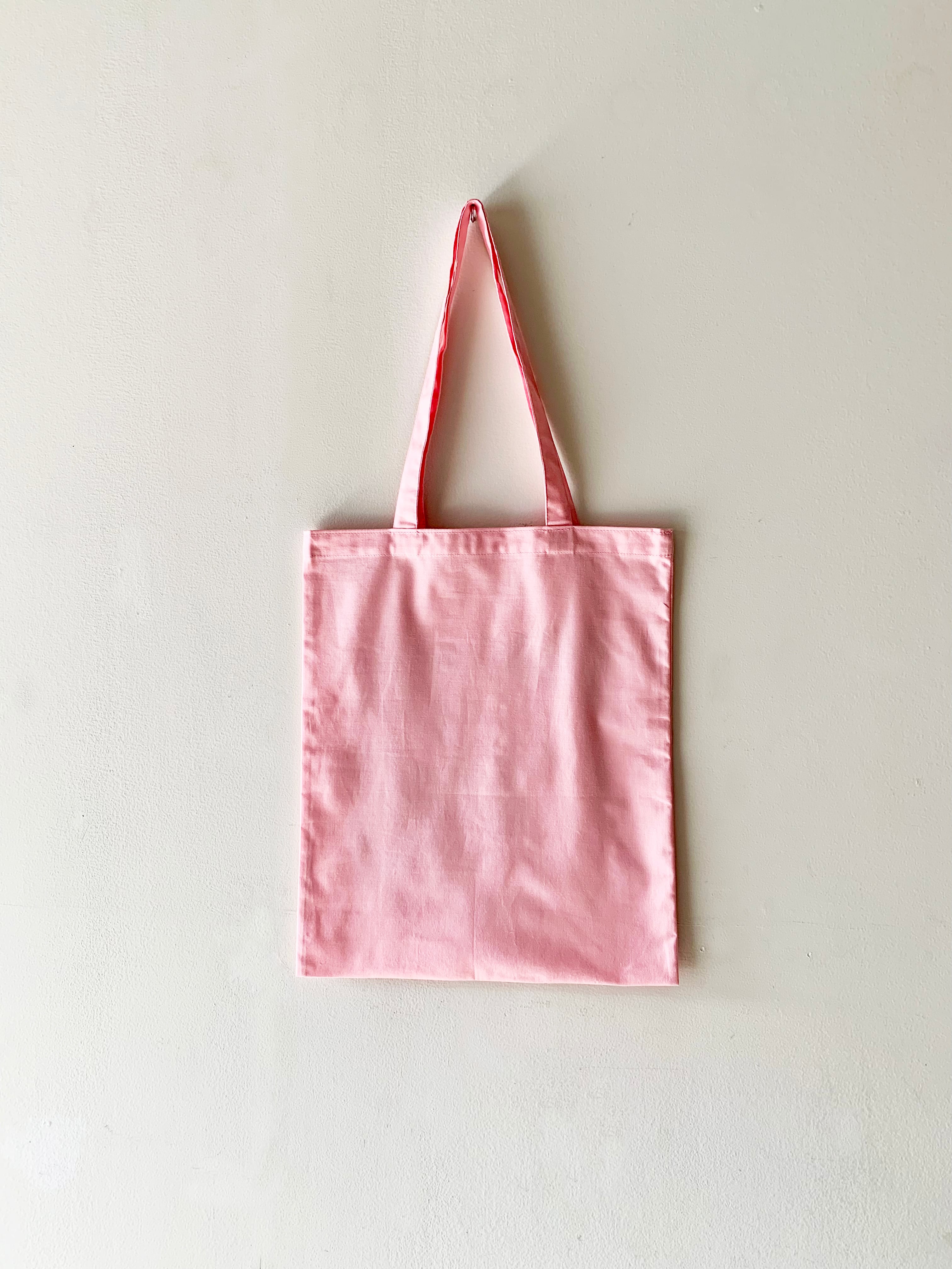 大絵本美術展「童堂賛歌」キービジュアルのラフ画を新鮮なカラーリングであしらったトートバッグです。スモーキーブルーの生地には蛍光オレンジでおさげヘアのこ、チェリーブロッサムピンクの生地には蛍光黄緑でぼっちゃんヘアのこをプリント。展覧会ロゴはどちらもシルバーでプリントしています。シルク版を手刷りで仕上げているため、表情豊かに個体差があります。A4のノートやファイルがすっぽり入る大きさです。