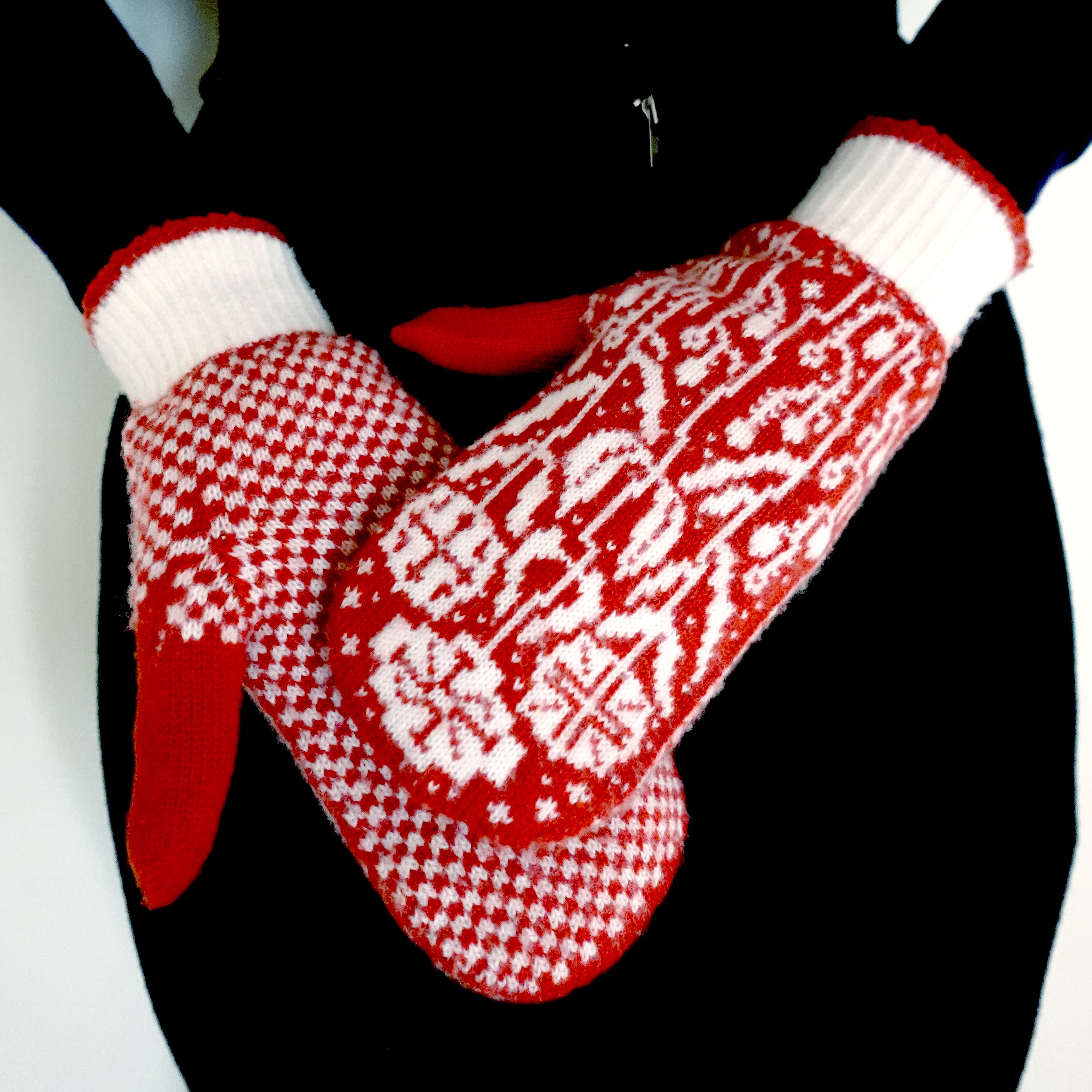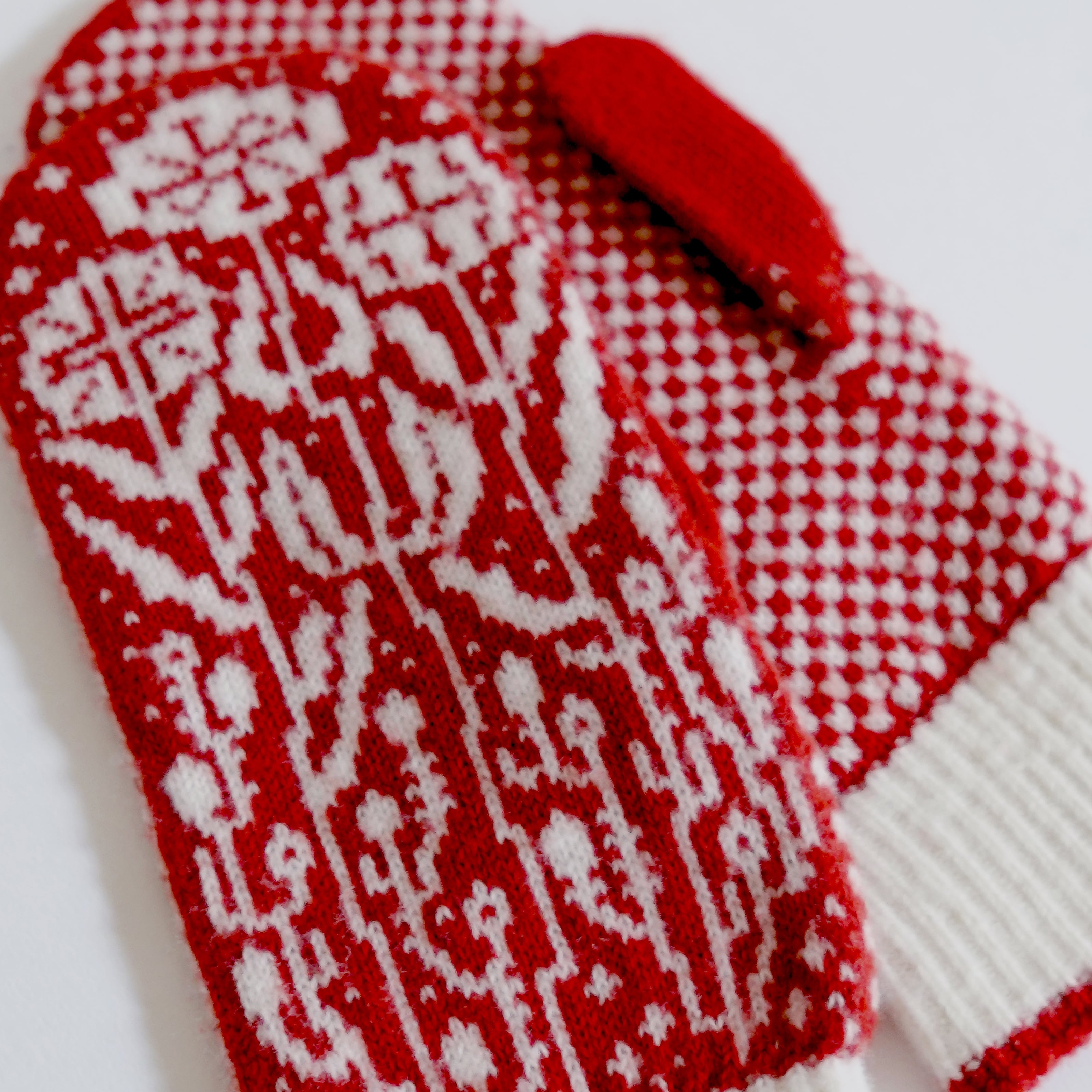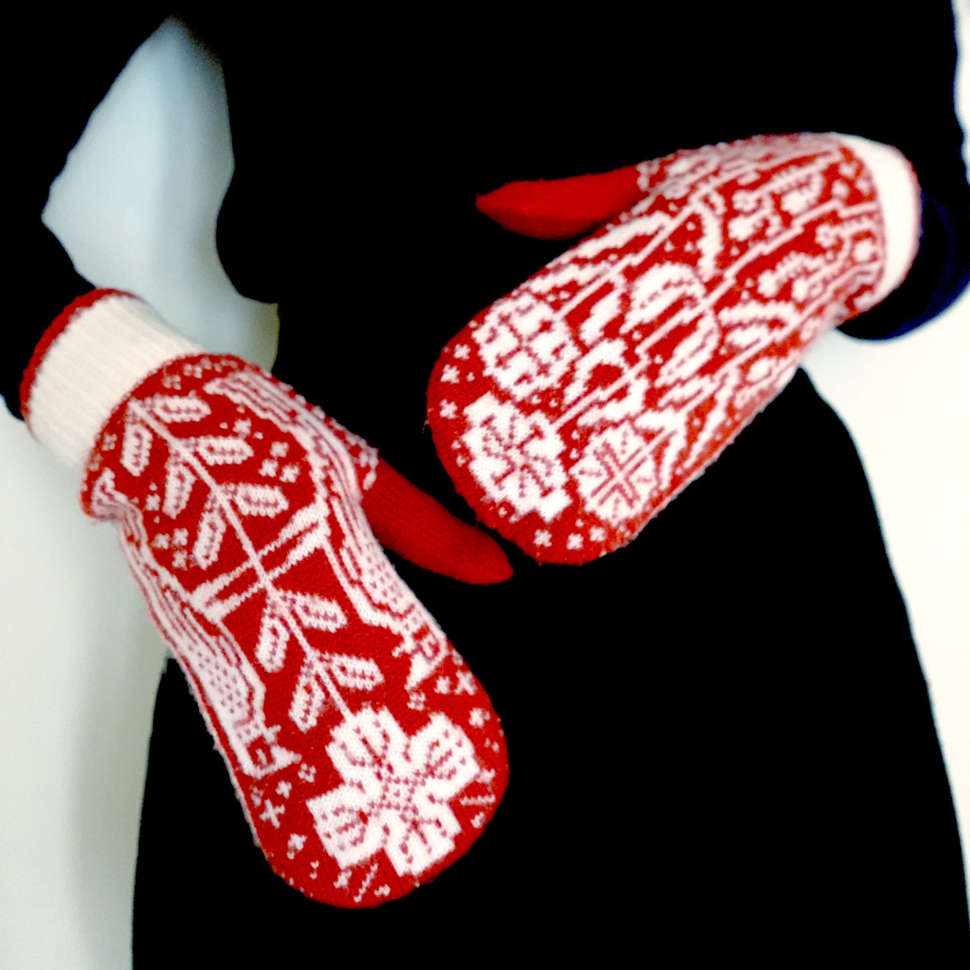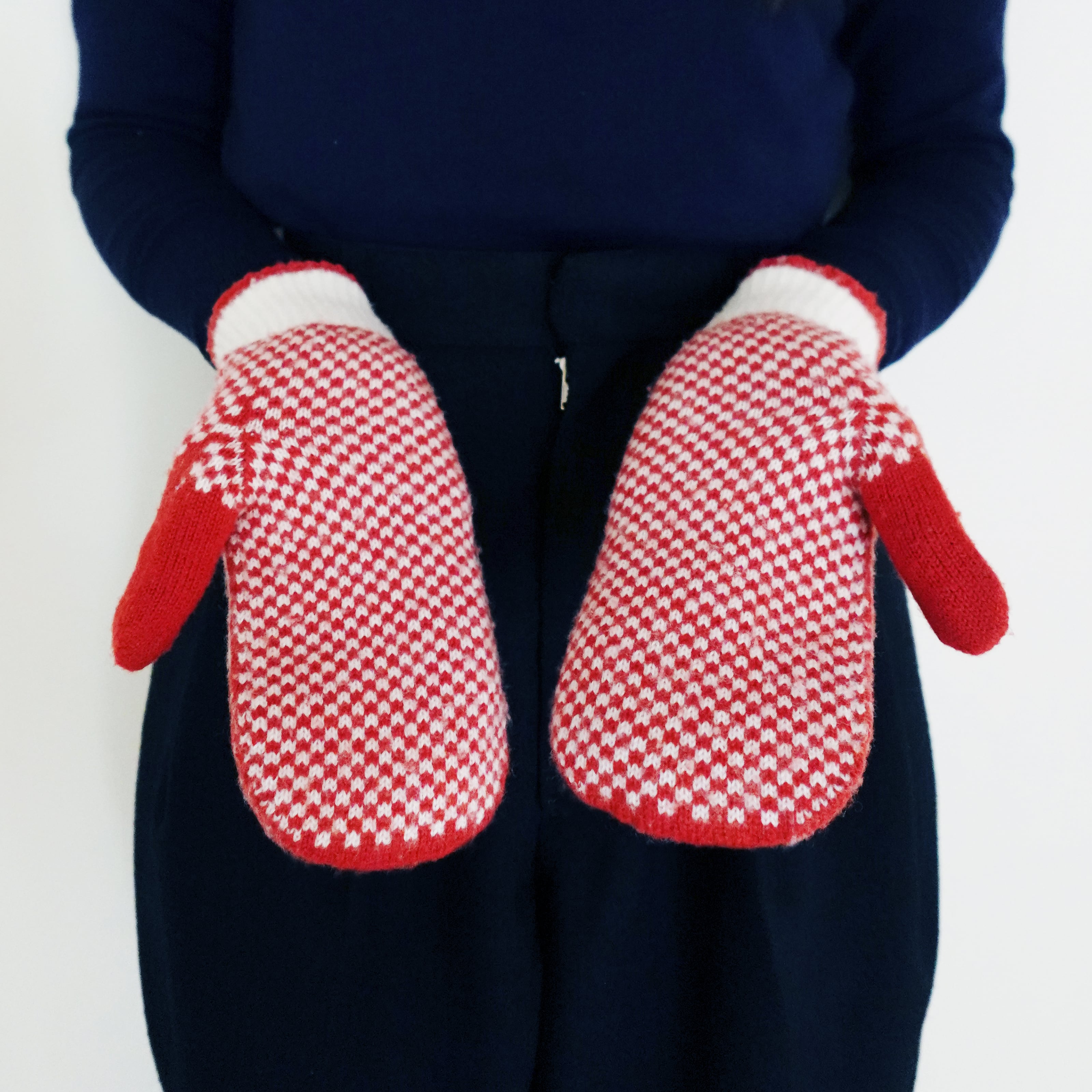 ウール100%のジャガード編みのミトン